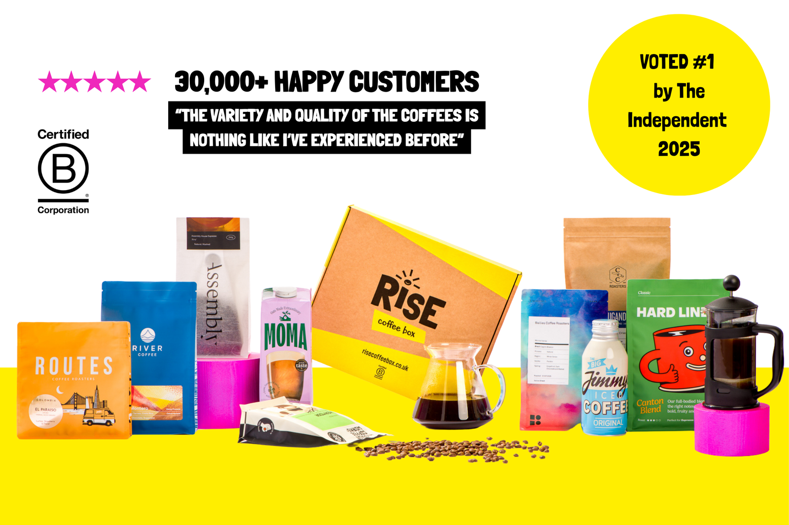 Meet the ultimate coffee discovery experience voted #1 by The Guardian - May 2025 & Best Value Coffee Subscription by Good Food! With RISE's UK monthly coffee subscription, every box is a new fresh adventure featuring handpicked, small-batch coffee from the best independent roasters across the UK. From bold single origins to unique blends, your daily brew will never feel boring again.