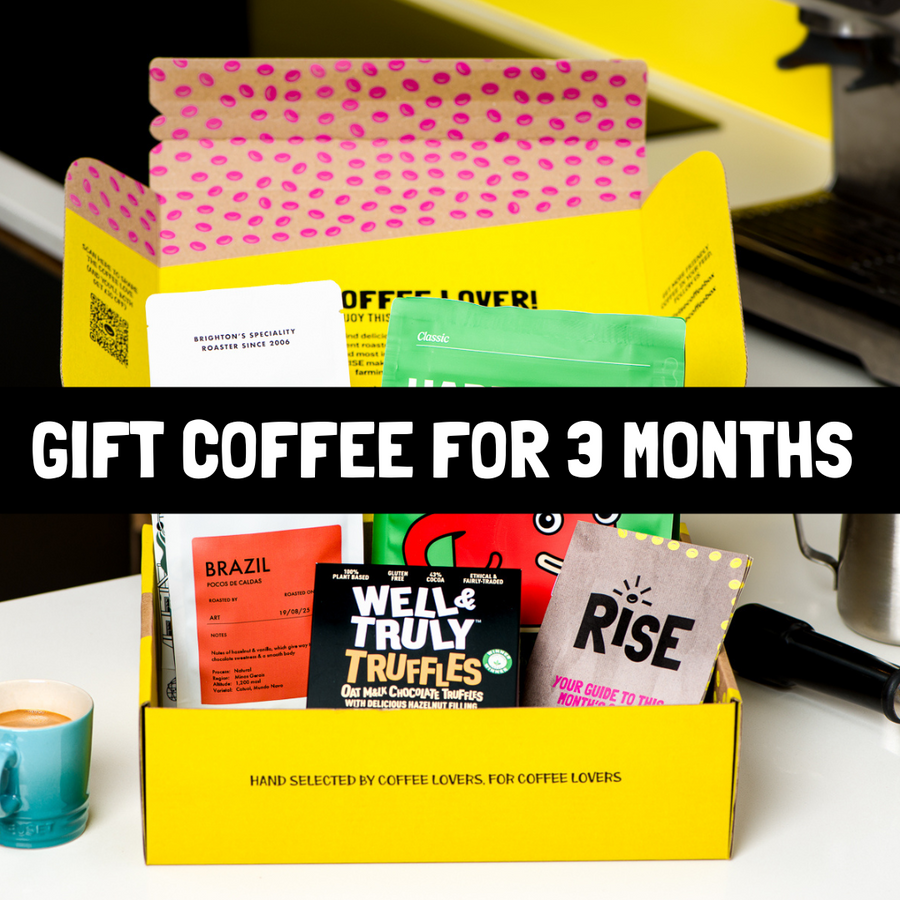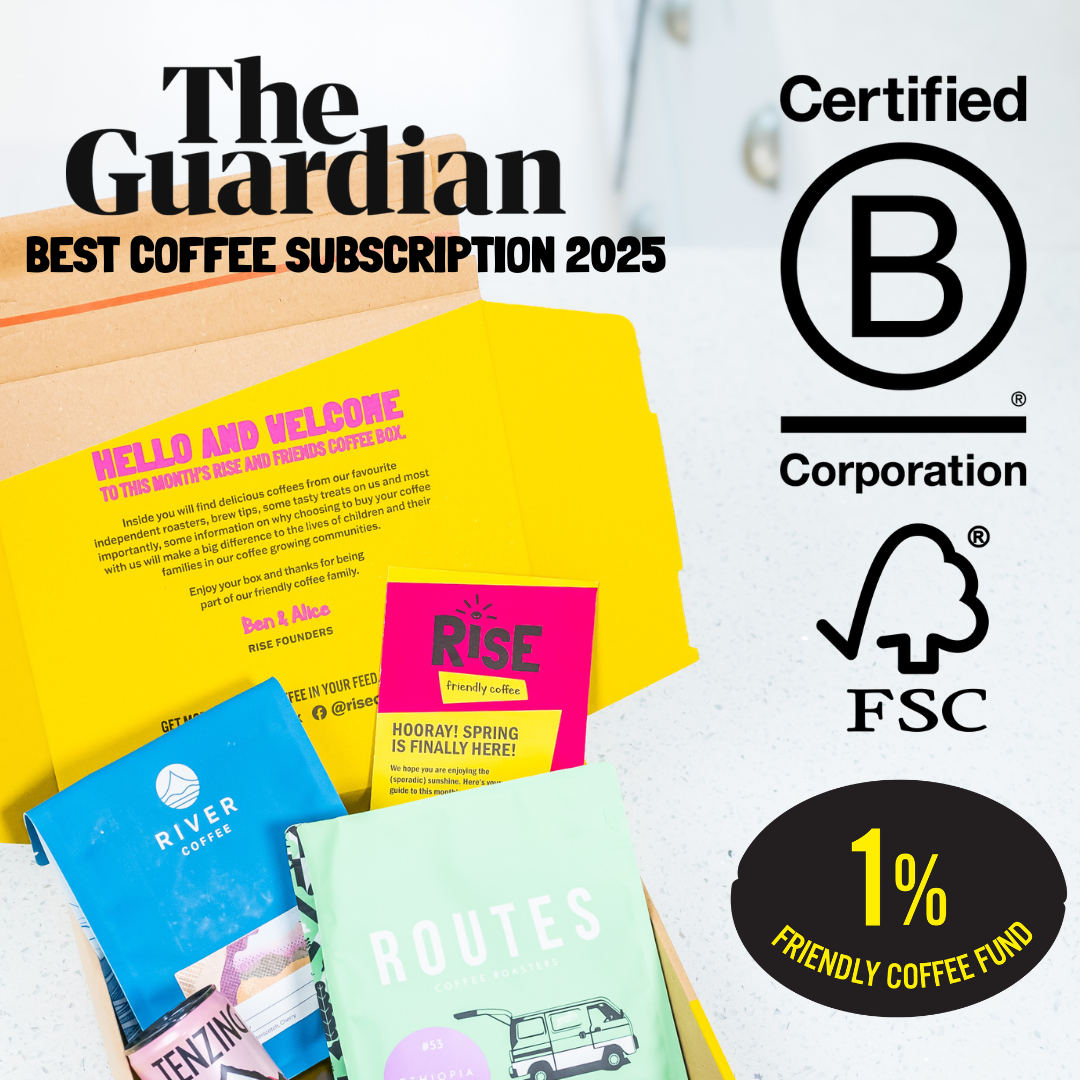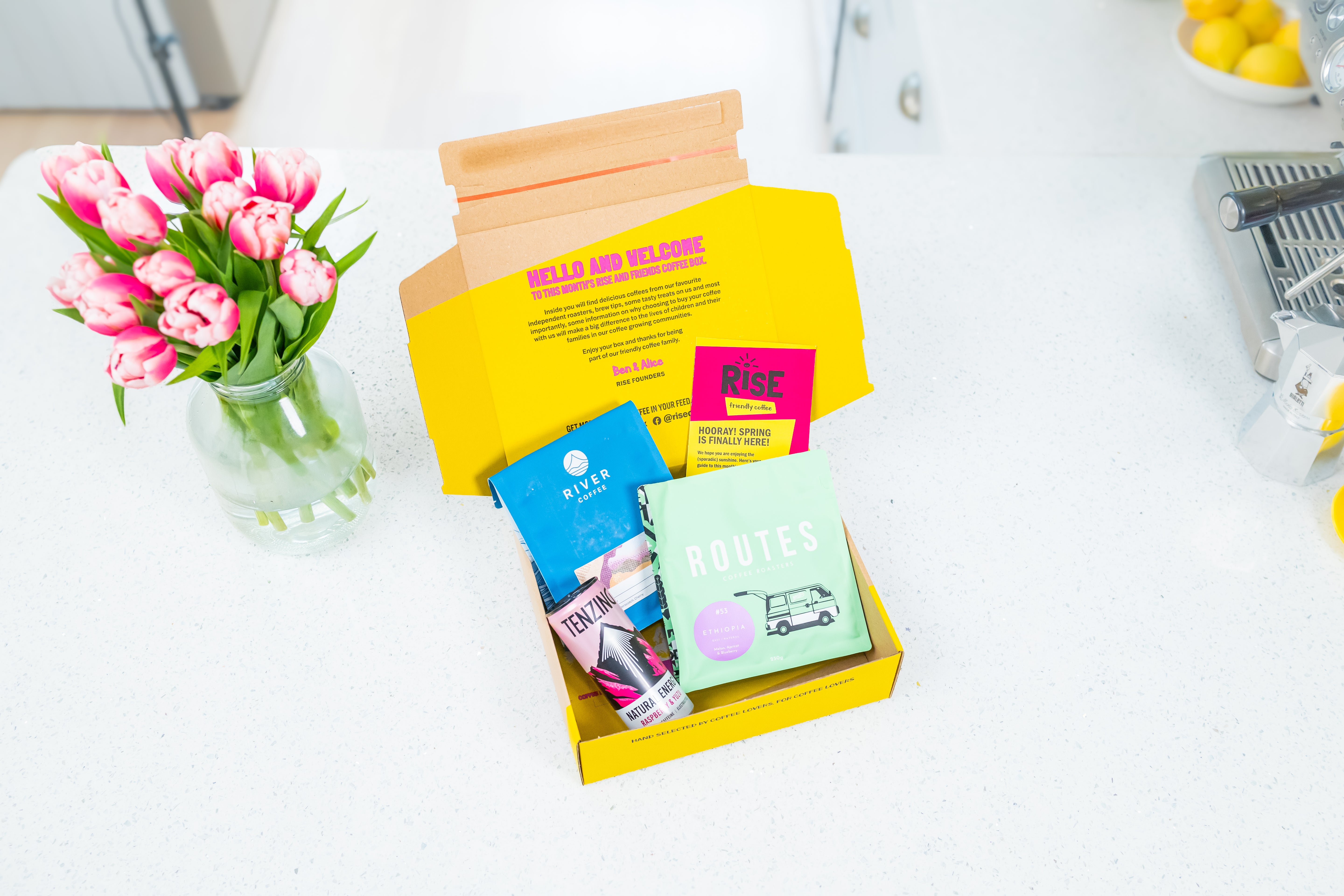 RISE coffee box is an award-winning coffee box for coffee lovers. Each month you’ll receive a carefully curated RiSE coffee box, filled with delicious freshly roasted specialty coffee, brew tips, snacks and stories of the farmers and roasters. Choose from ground (coarse, medium or fine) or whole beans, delivered to your door for free.