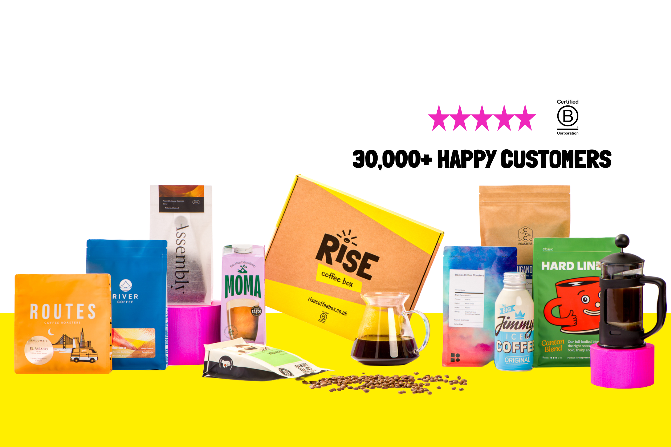 Each month, Alice and Ben handpick two standout UK coffees with top roasters and the RISE community. Fresh, flexible, B Corp certified with 1% going back to coffee-growing communities. Great coffee, real impact. Join the RISE crew! ☕