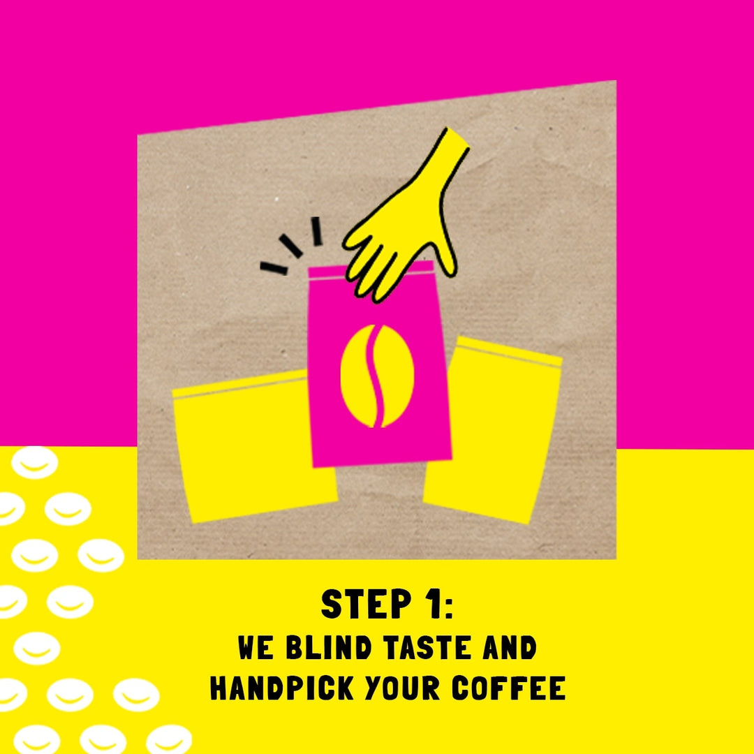 Freshly roasted UK specialty coffee, handpicked and curated by founders Alice & Ben (500g or 1kg) for twelve months